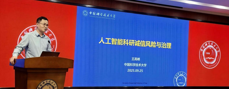 会上,中国科学技术大学科技哲学系副教授、博士生导师王高峰教授以《人工智能科研诚信风险与治理》为题做专题报告。他首先深入浅出地介绍了科研诚信与科研伦理的基本认知,深刻洞察与前沿分析了人工智能科研诚信现状与问题,并由此展开探讨人工智能对科研诚信的机遇与挑战,最后为我们系统梳理了AI环境下科研诚信面临的风险谱系与治理路径。他指出要对接国际科研诚信标准,发挥个人在群体中的价值引领作用,鼓励建立多角色共担责任的研究范式,鼓励科研人员主动参与科研诚信政策与规则的制定,推动科研人员掌握并运用AI驱动的科研诚信检测工具,形成“自查-互查”机制。